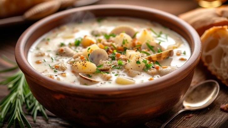 🦪 Key Ingredients: Clams, potatoes, pork fatback, milk or cream
