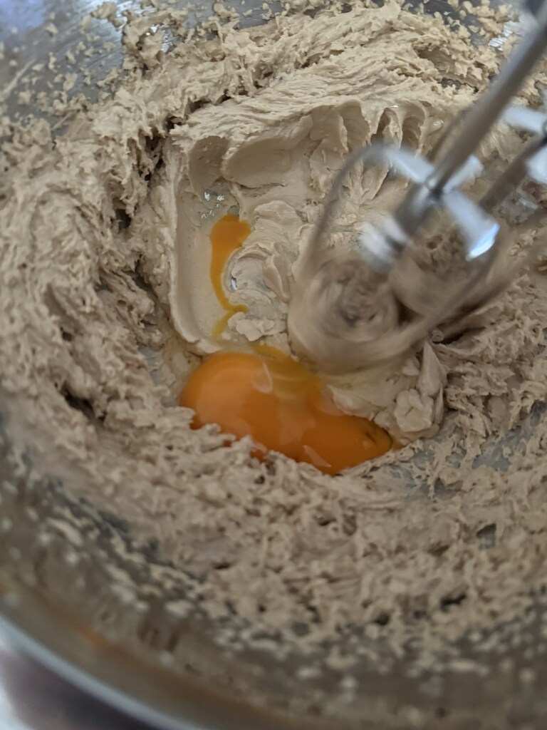 - In a mixing bowl, cream butter and brown sugar until fluffy.