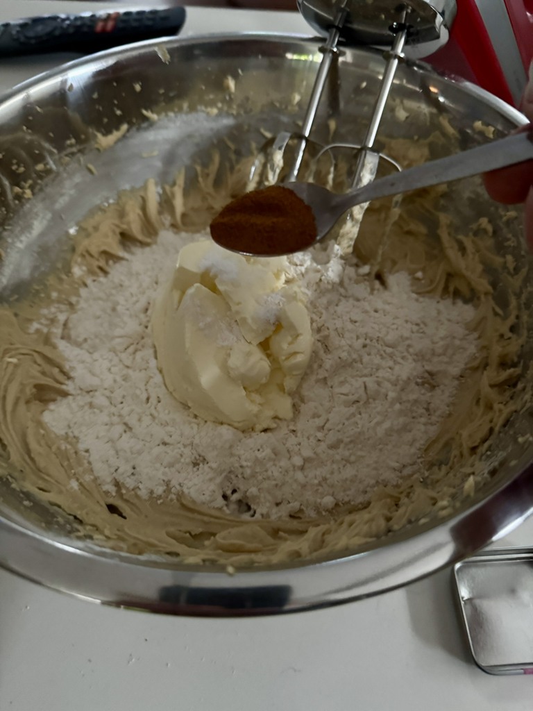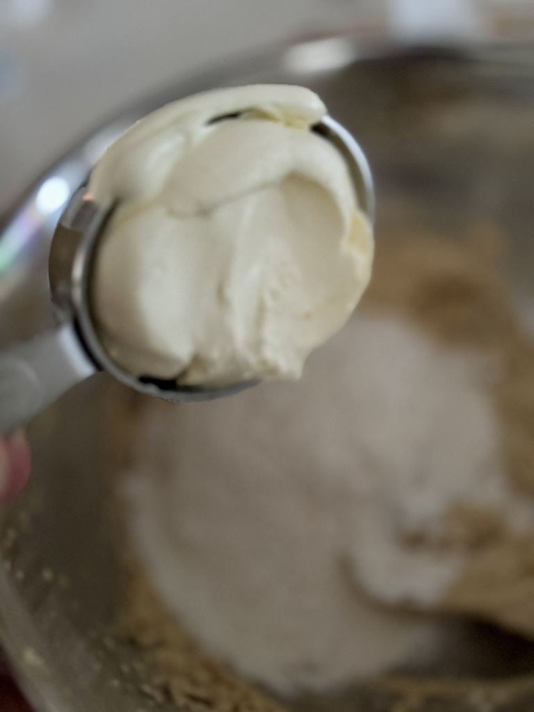 - Add flour and sour cream alternately, mixing gently after each addition.