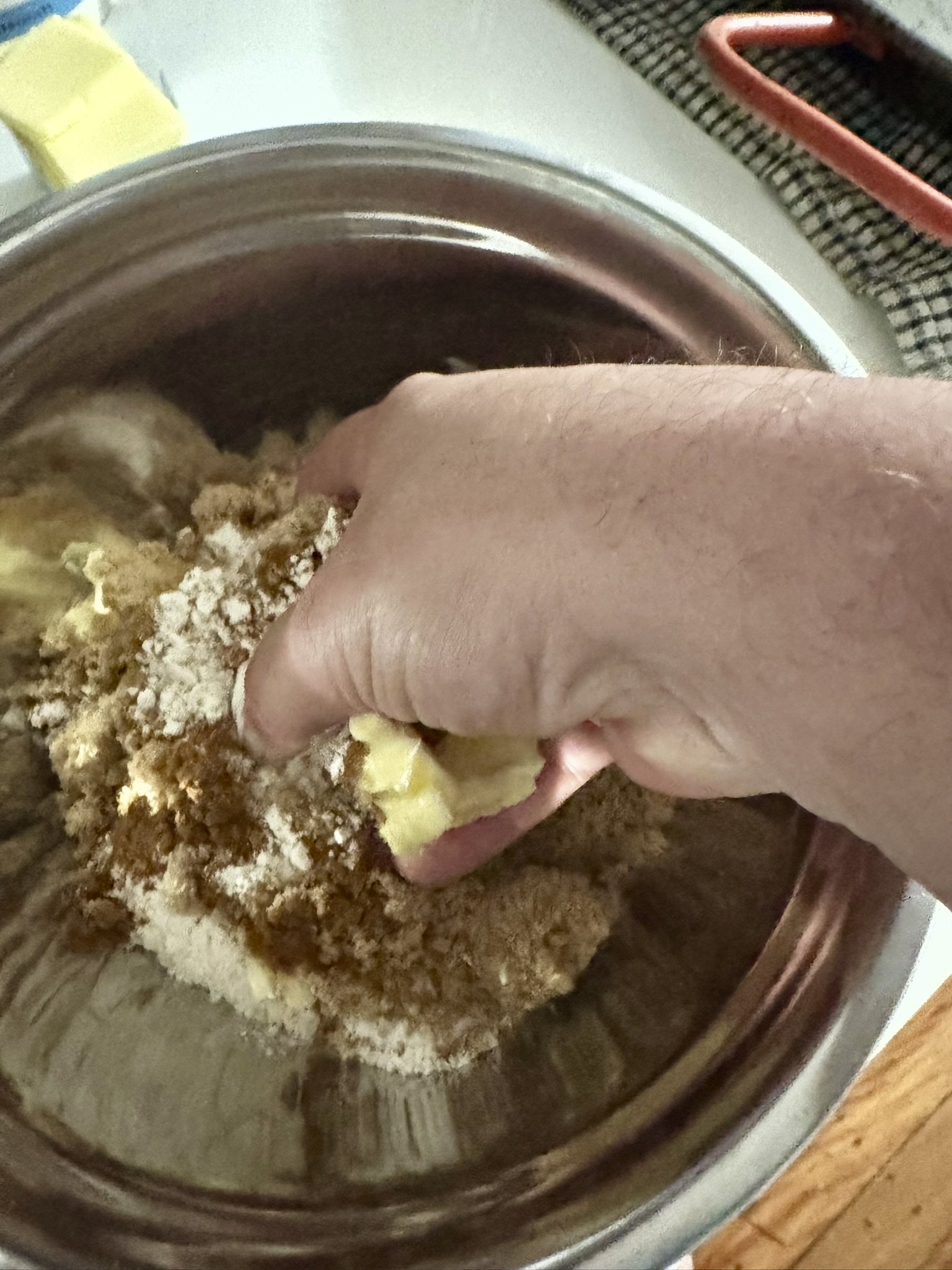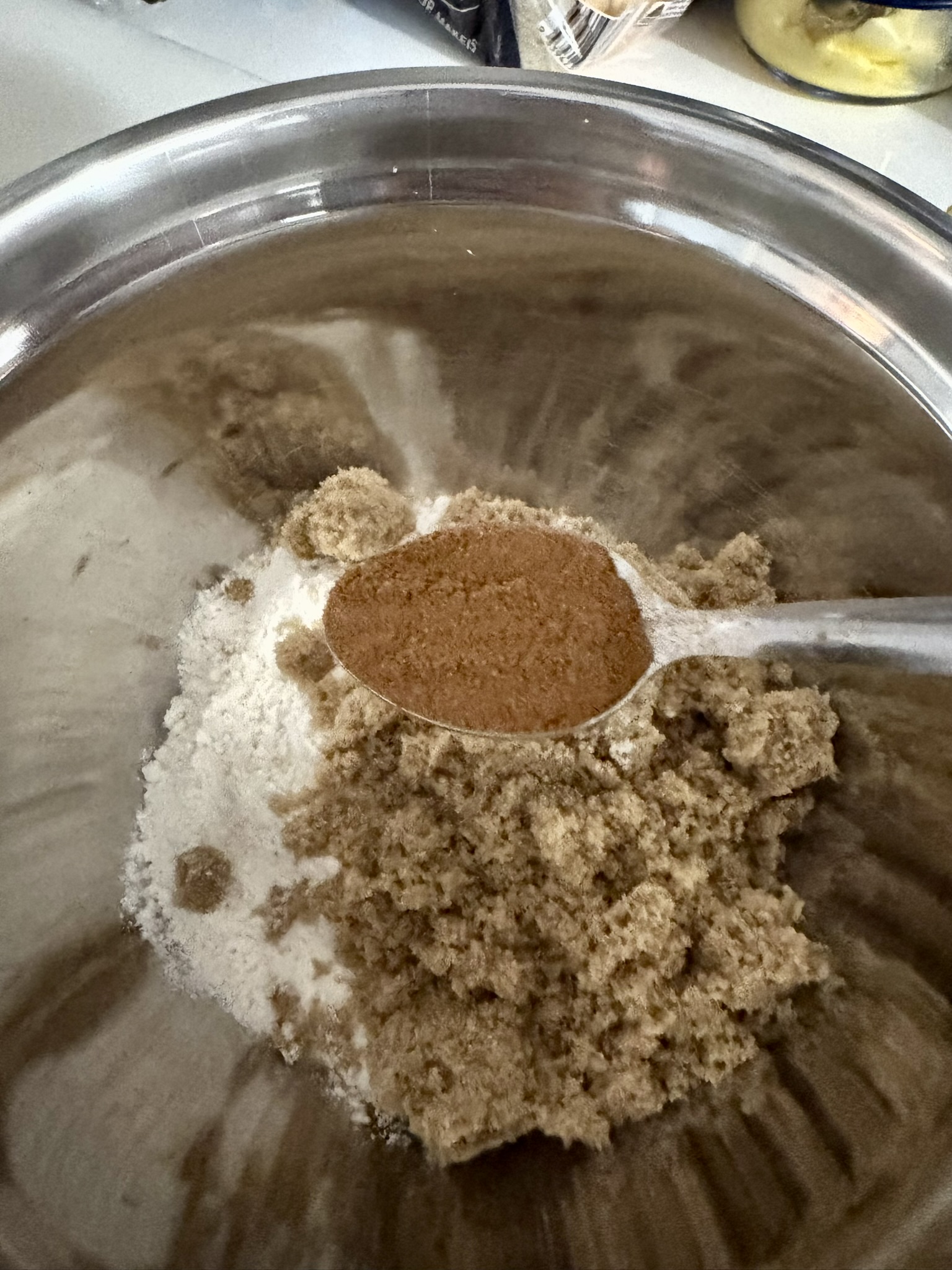 - In a small bowl, add together brown sugar, flour, cinnamon, and butter.