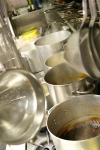 Meanwhile, in the stock pot, sauté́ mirepoix in the oil until lightly browned.