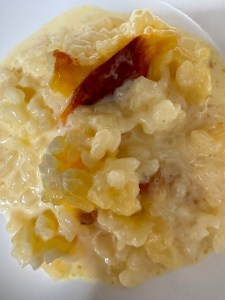 Add the small cubes of butter scattering across the top of the milk mix and Rice.