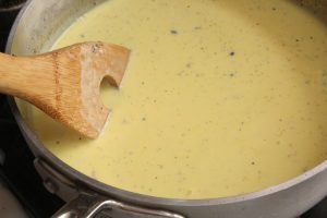 Cooking the cream mix - Note during cooking, it is very easy to split the mixture - this resembles scrambled egg, so be careful...